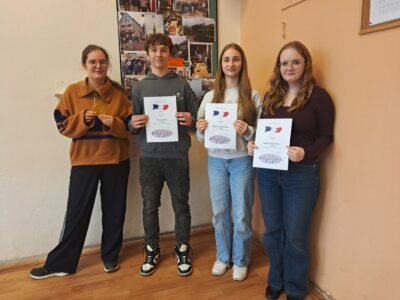 Praxe francouzských stážistů. V lednu a únoru (19. 1.-13. 2.) zavítali do hodin francouzštiny v 1. E, 2. F, 3. E a 4. E francouzští stážisté Elisy Py a Antoine Rubichon z východofrancouzského regionu Franche-Comté. [...]