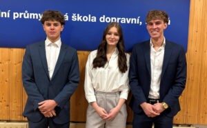 Mnozí známe formalizovaný postup výběrového řízení, ve kterém je vyhledáván nejvhodnější kandidát na pracovní pozici. Praktické zkušenosti z výběrového řízení můžeme získat jen přímou účasti, tak jako naši žáci 4. ročníků Kateřina Ježová, Tomáš Turek a Dominik Končal. Naši žáci se ve čtvrtek 26. března 2026 od 8.00 h zúčastnili na SPŠ dopravní v Plzni každoročně pořádané městské soutěže „Fiktivní výběrové řízení“. Mohli se ucházet o pozici asistentky ředitele, marketingového pracovníka nebo manažera logistiky.