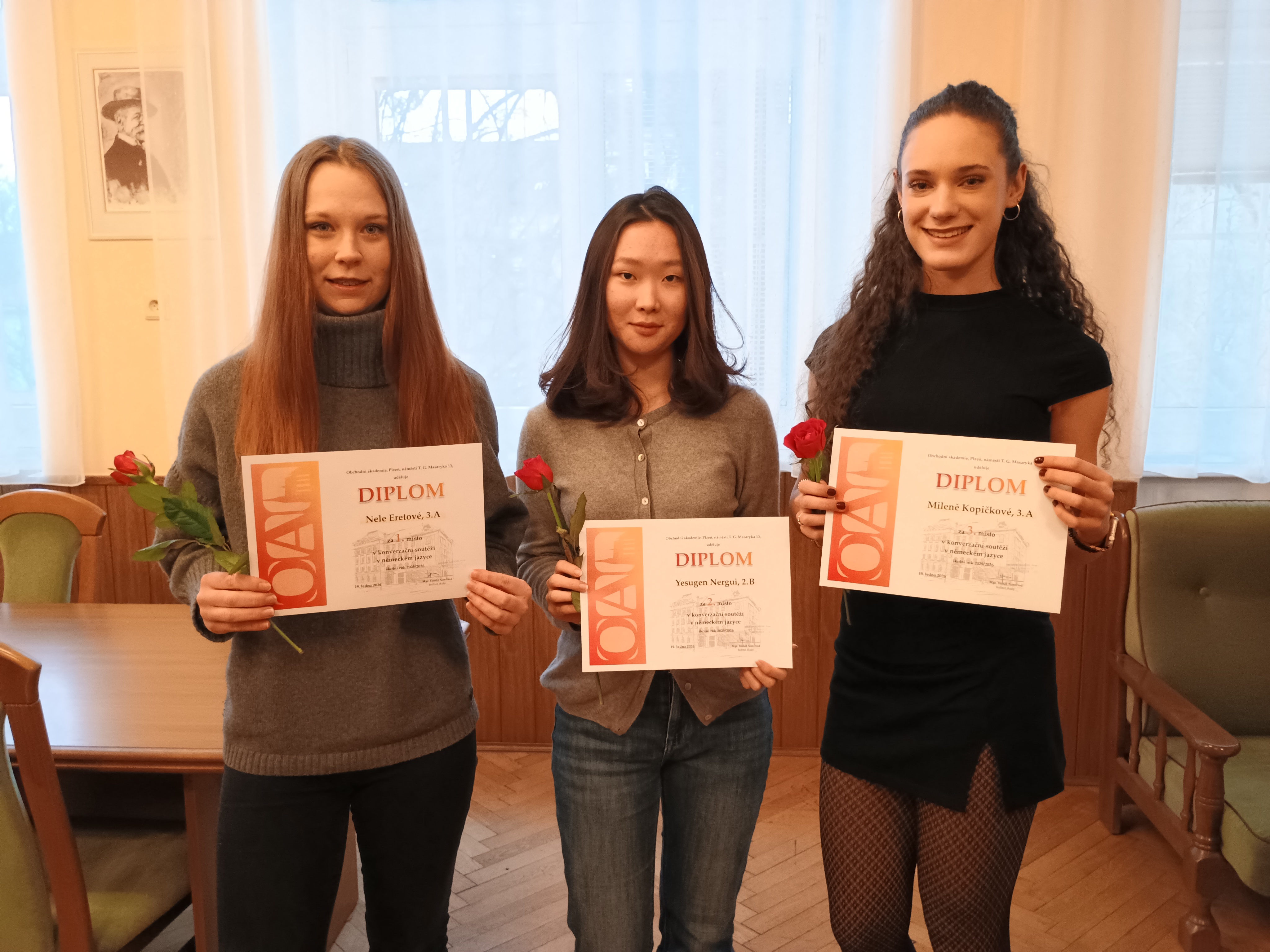 V pondělí 19. ledna se uskutečnilo školní kolo konverzační soutěže v německém jazyce. Své znalosti poměřili nejlepší němčináři a němčinářky z řad 2. a 3. ročníků. V prvním kole se testoval poslech s porozuměním, druhé kolo obsahovalo konverzaci na vybrané téma a popis obrázku. Nejlepších výsledků dosáhla tato děvčata: Nela Eretová ze 3.A, Yesugen Nergui ze 2.B a Milena Kopičková ze 3.A. Všem účastníkům děkujeme! Vítězce Nele, která bude naši školu reprezentovat v okresním kole, držíme palce!