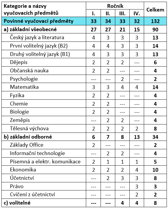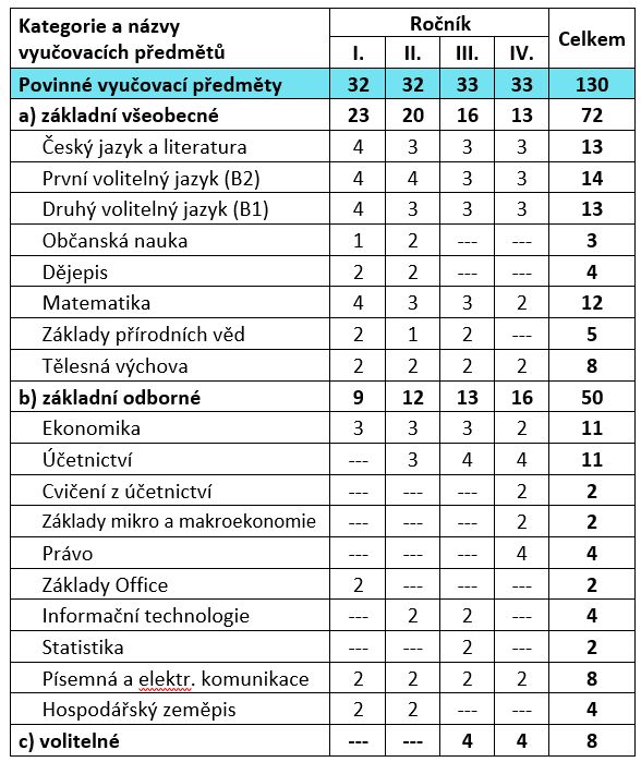 V tomto oboru je kromě ekonomicky zaměřených předmětů také posílen všeobecně vzdělávací základ. Díky tomu mají absolventi možnost dále studovat na vysokých a vyšších odborných školách nejen s ekonomickým zaměřením.