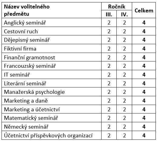 Od třetího ročníku si studenti oboru Obchodní akademie vybírají ze široké nabídky volitelných předmětů.