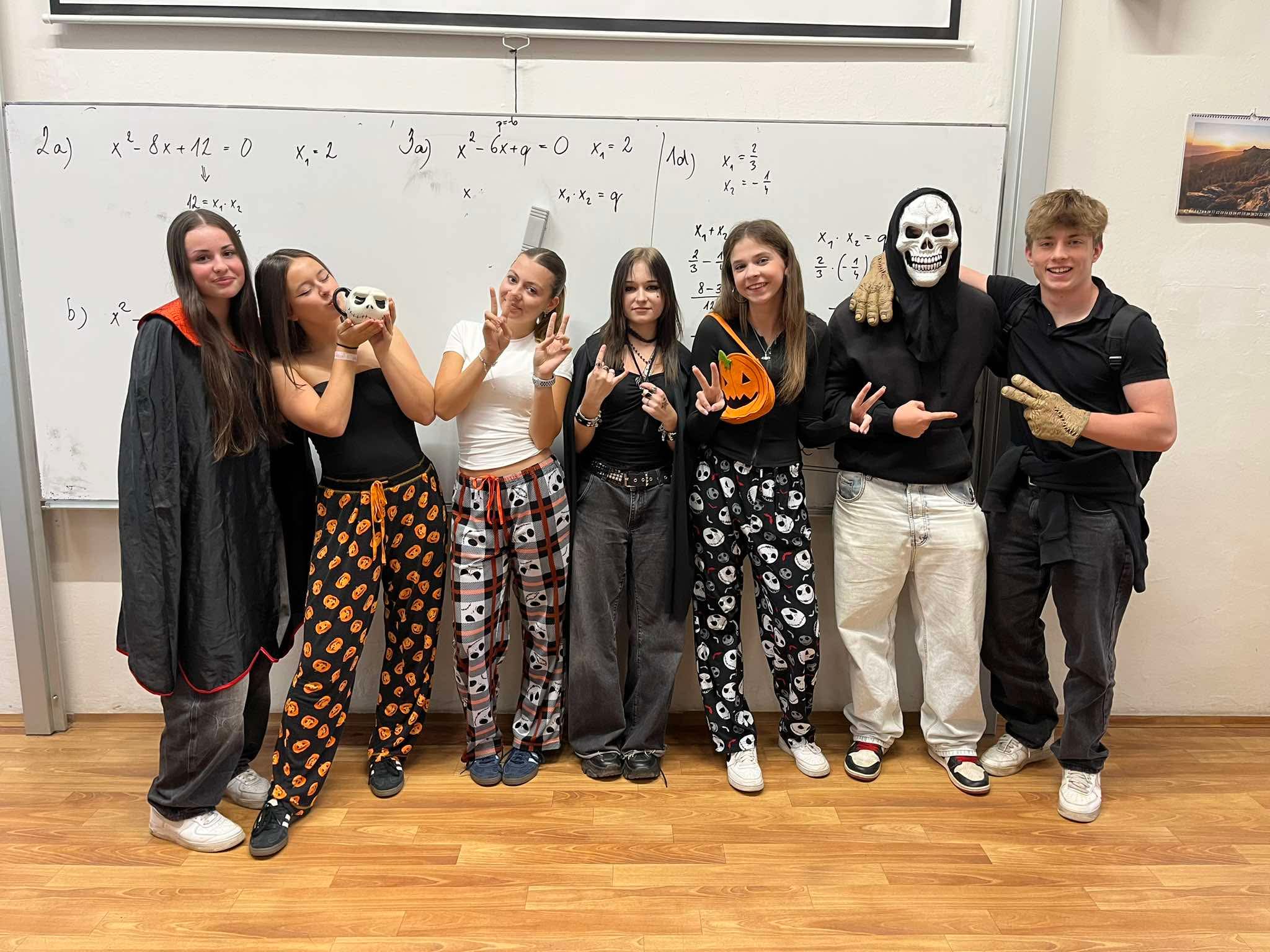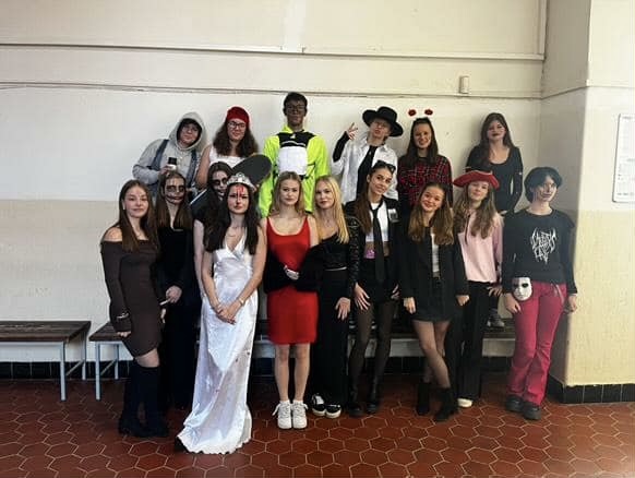 V pátek 31. října 2025 se po vzoru minulého roku uskutečnil školní Halloween. Žáci měli možnost přijít do školy v kostýmech a naladit se tak společně na tajemnou atmosféru. Mnozí naplno využili svou kreativitu, a tak jsme mohli vidět moc krásné masky. Soutěž o největší počet kostýmů vyhrála třída 1.E. Akci jsme si všichni moc užili a už se těšíme na příští rok!