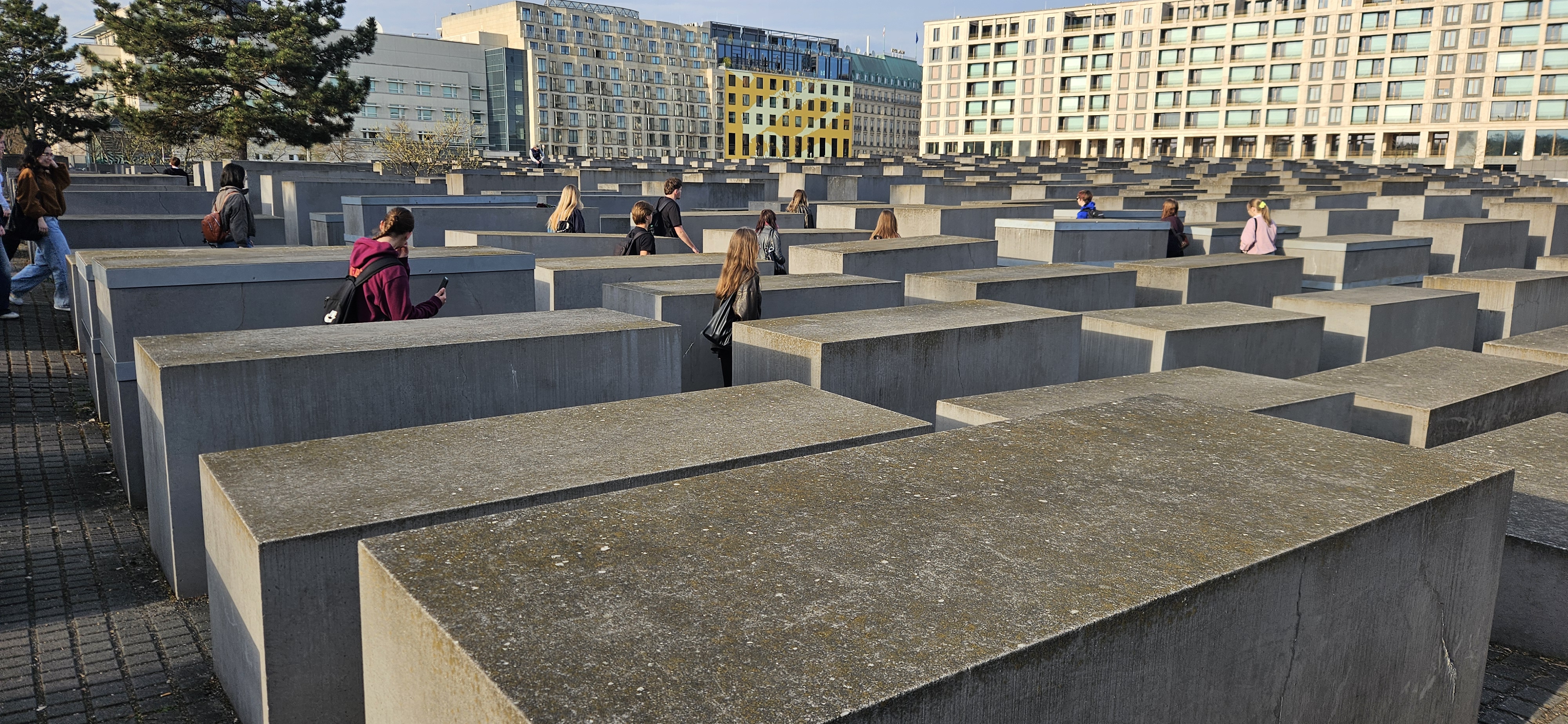 Naprosto uchvacující zážitek nám nabídl Židovský památník vybudovaný k připomínce židovských obětí holocaustu. Památník, nacházející se nedaleko Braniborské brány a Říšského sněmu, tvořily betonové kvádry o výšce v rozmezí pár centimetrů až po několik metrů, kterými jsme procházeli jako monotónním bludištěm.