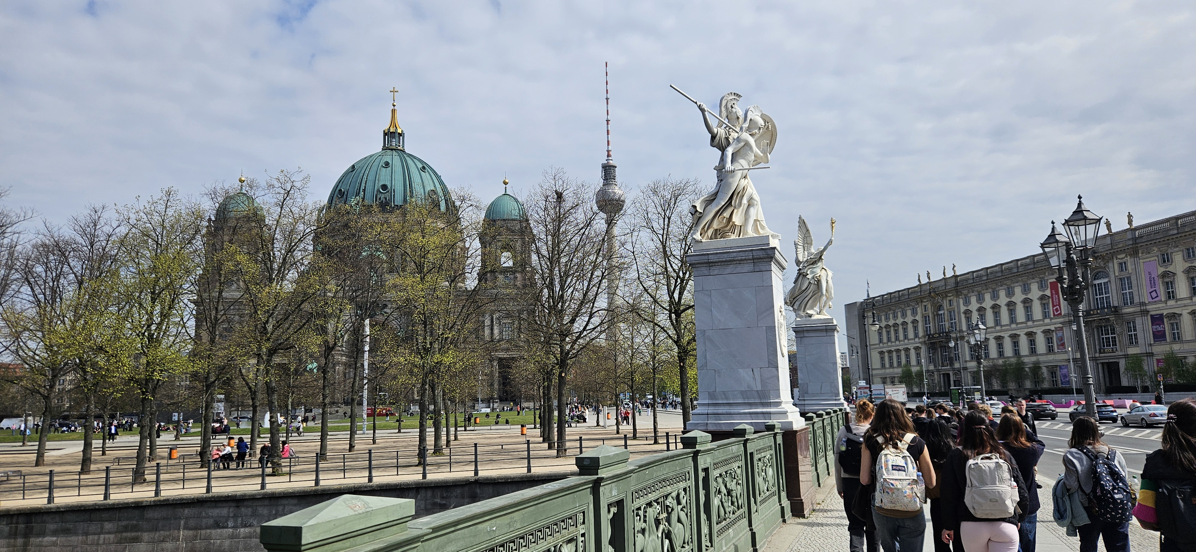 Po krátkém rozchodu u Hauptbahnhof jsme zamířili k srdci Berlína, na Alexanderplatz, s velkými otočnými hodinami Weltzeituhr. Při cestě jsme se stavili u památníku Neue Wache, avšak hlavním středobodem našeho výletu zůstala do výšin se tyčící Fernsehturm. Pro neskutečně krásný výhled na celý Berlín jsme museli projít prohlídkou připomínající letištní kontrolu a vyjet velmi rychlým výtahem jako ve filmu. Výhled stál ovšem skutečně za to.